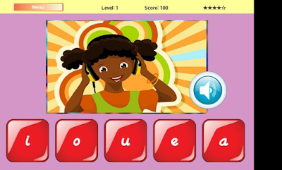 An example, If Player A starts the game, and in Level 1 he/she successfully recognizes phonemes for {a, e, o, u}, the screen-shot would look something like this:
